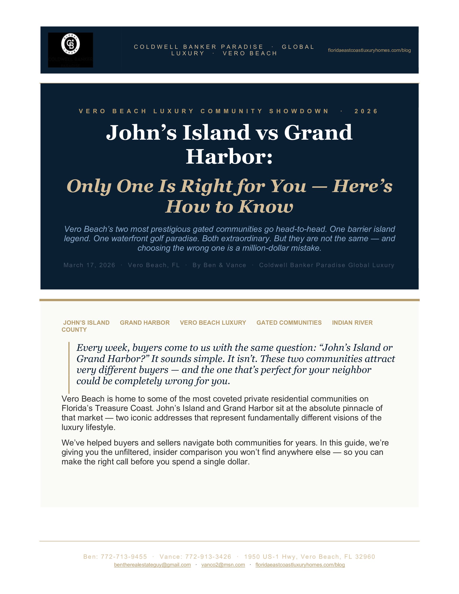 John’s Island vs Grand Harbor: Only One Is Right for You — Here’s How to Know