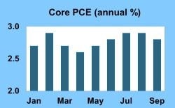 Fed officials keep a close eye on inflation, and the PCE price index is their favored indicator. In September, Core PCE was 2.8% higher than a year ago, slightly below expectations, down from an annual rate of increase of 2.9% in the prior month. Progress toward the 2.0% target of the Fed has not been easy, and this desired level has not been achieved since February 2021.